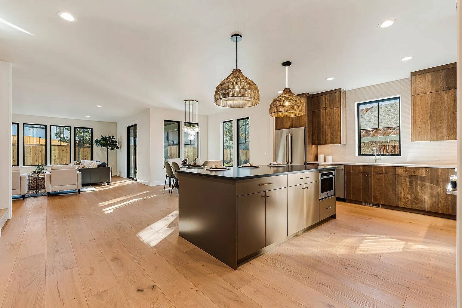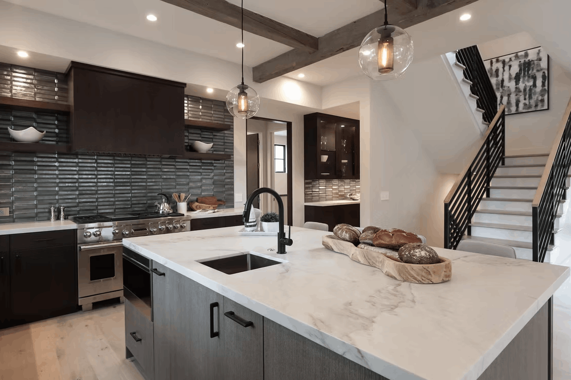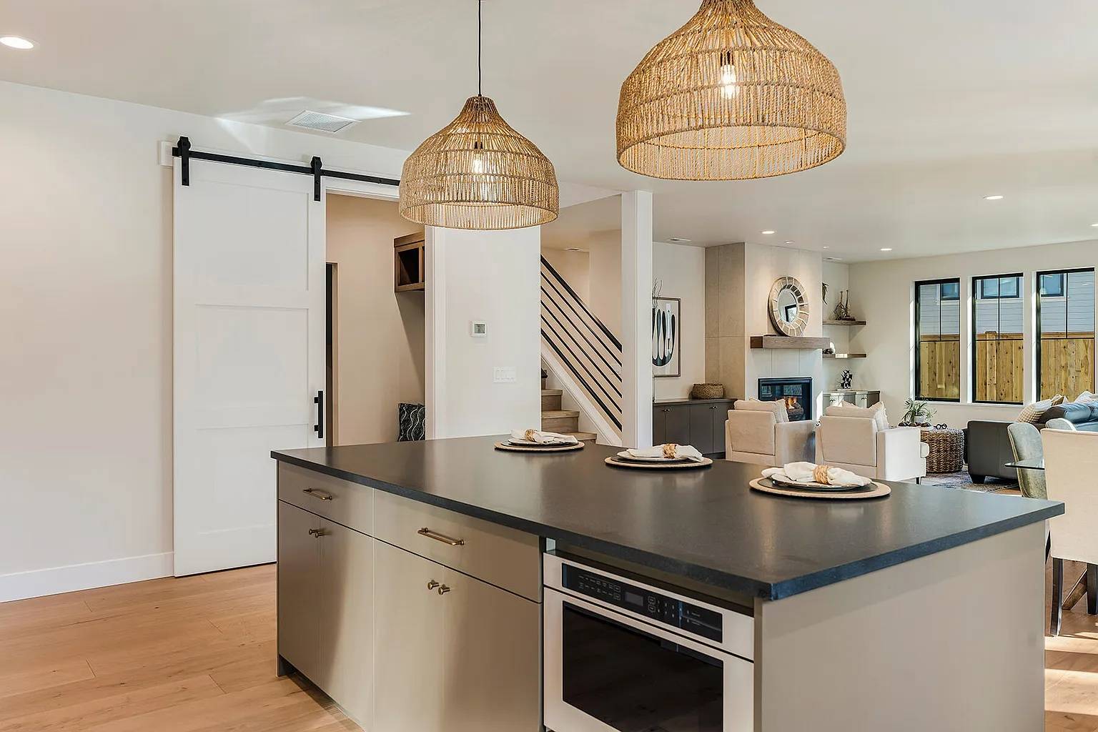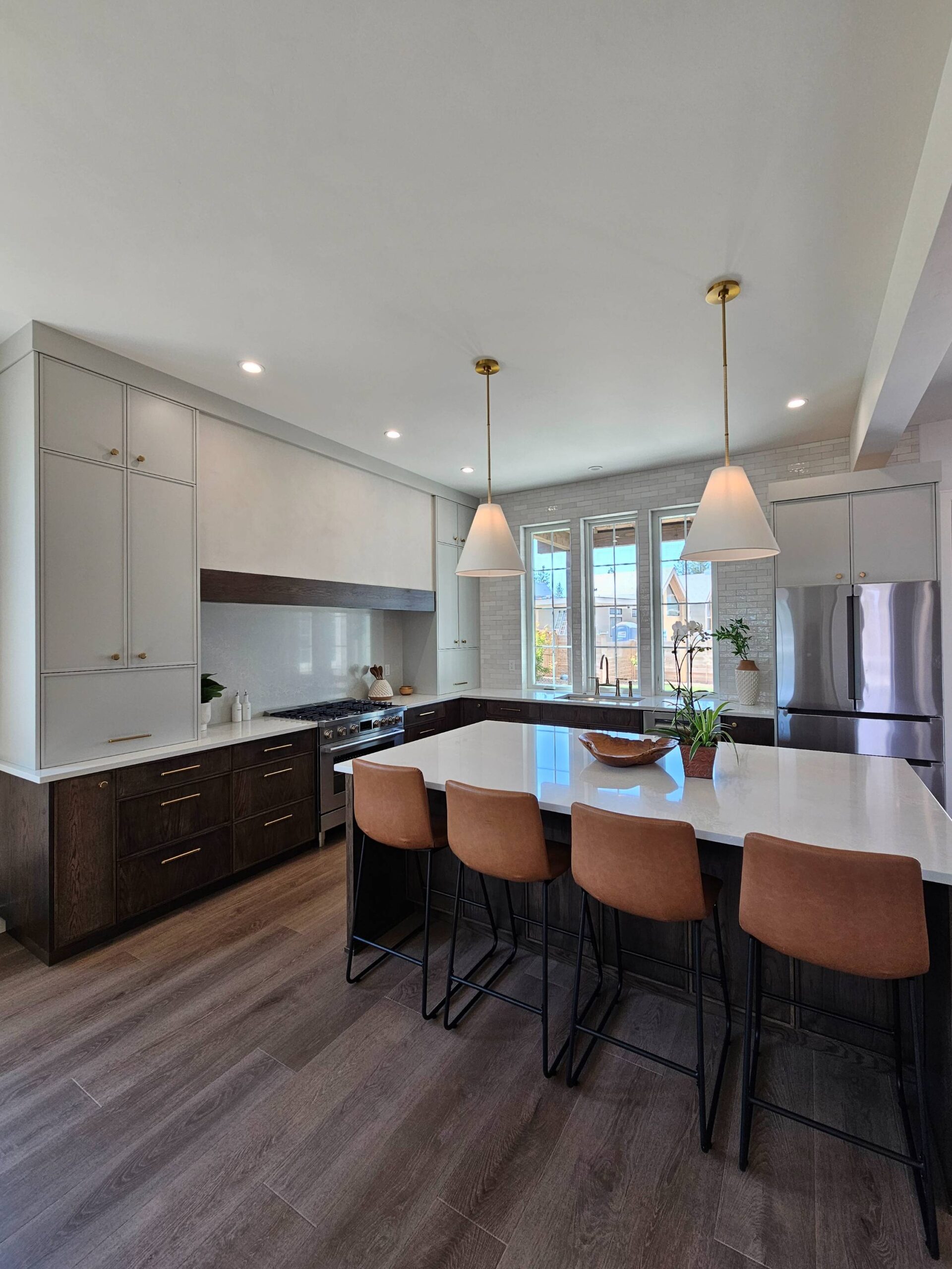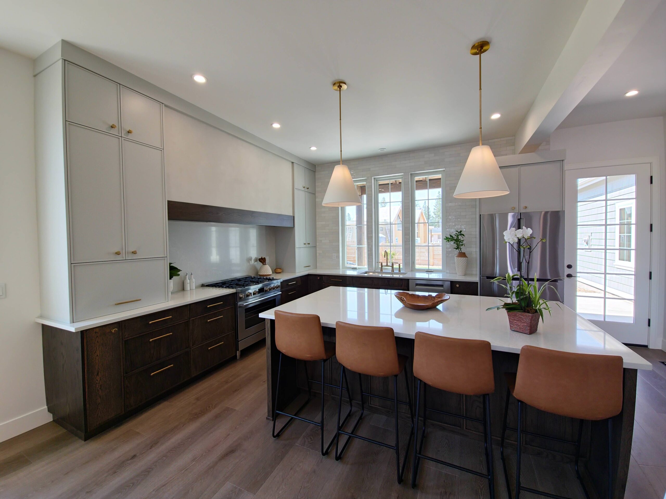 From waterfall islands and slab fronts to unexpected textures and matte finishes, these spaces showcase the versatility of contemporary design in homes across Discovery West, Shevlin West, and Talline.