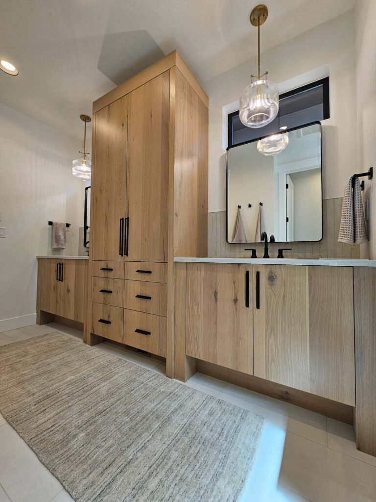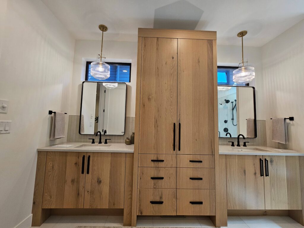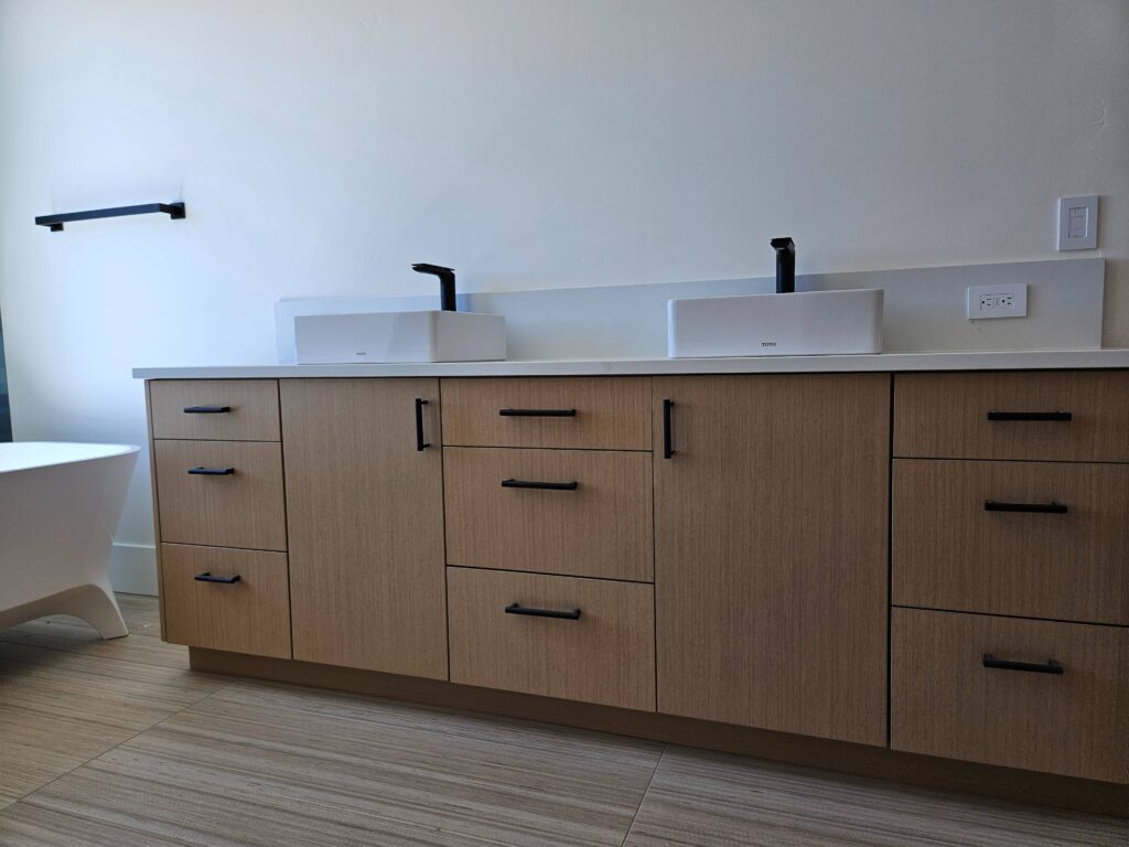 Clean lines. Sleek finishes. Thoughtful functionality. Our modern cabinetry designs bring a refined, minimalist aesthetic to kitchens, bathrooms, and living spaces across Central Oregon. With flat-panel doors, integrated hardware, and high-contrast materials, these custom cabinets are as sophisticated as they are functional.